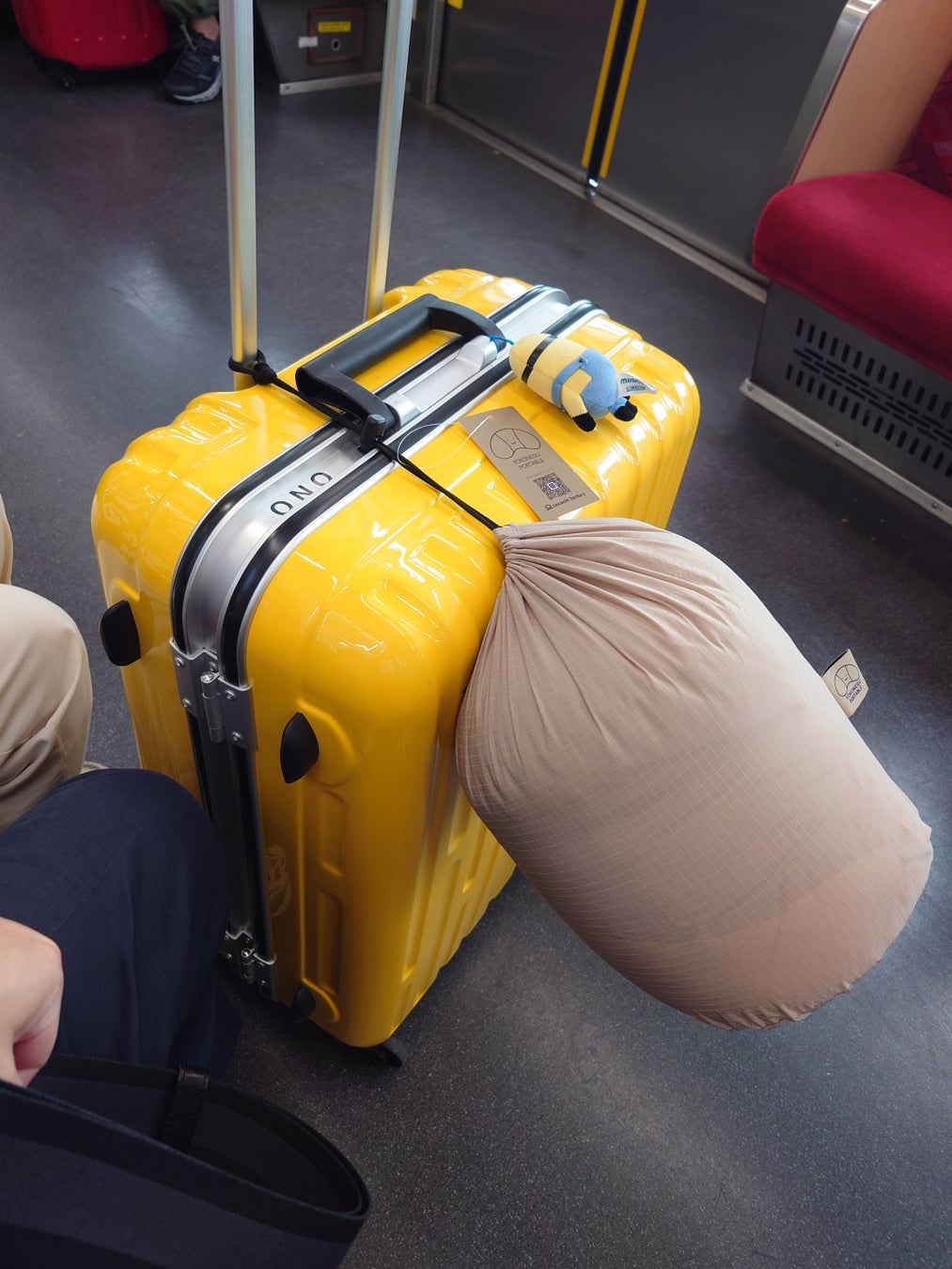 キャリーケースの手持ち部やハンドルに括りつけて移動が出来るので、持ち運びも邪魔にならず快適でした。ファスナーで簡単に上下分割が出来たので狭い機内でも問題無く使用出来ました。ネックだけ、腰当てだけ…と言うより両方同時に使った方がリラックス出来て効果的でした。