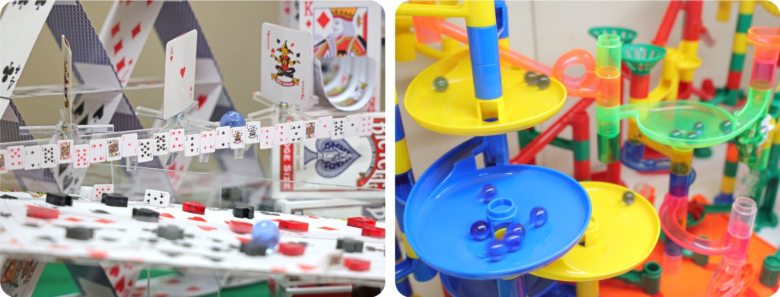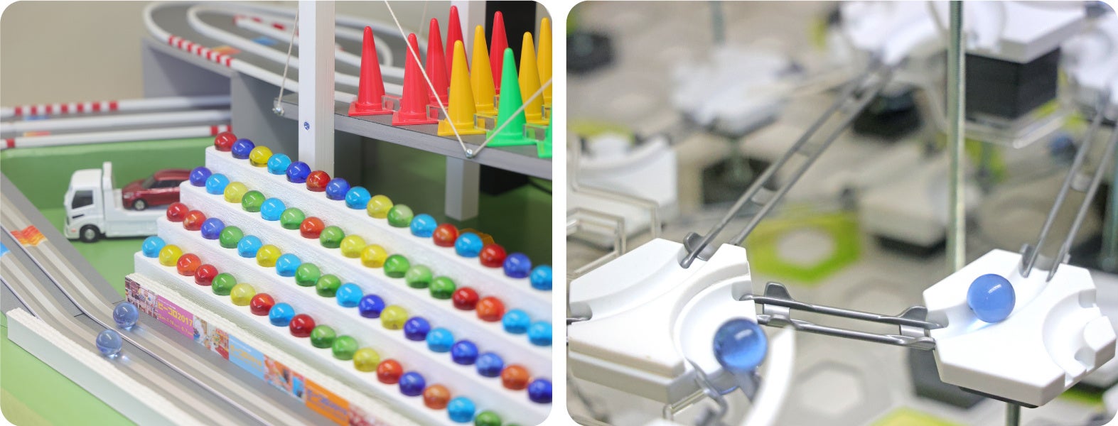 今年は「おもちゃ」を使用した装置も登場!自分が入れたビー玉がどのように仕掛けを動かすのか体験してみよう!