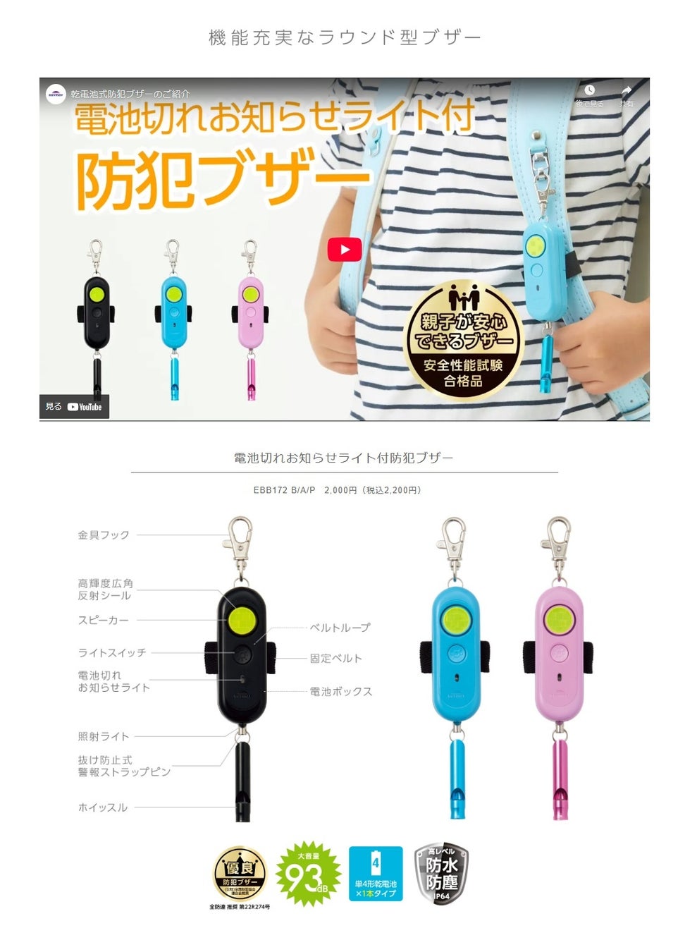 ■おすすめ商品:「電池切れお知らせライト付き防犯ブザー」