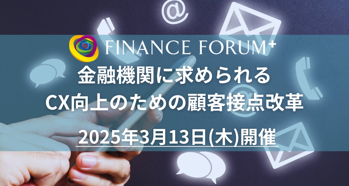 株式会社セミナーインフォ(本社:東京都千代田区 代表:小西 亘)は、2025年3月13日(木)にFINANCE FORUM⁺「金融機関に求められるCX向上のための顧客接点改革」を開催することとなりました。