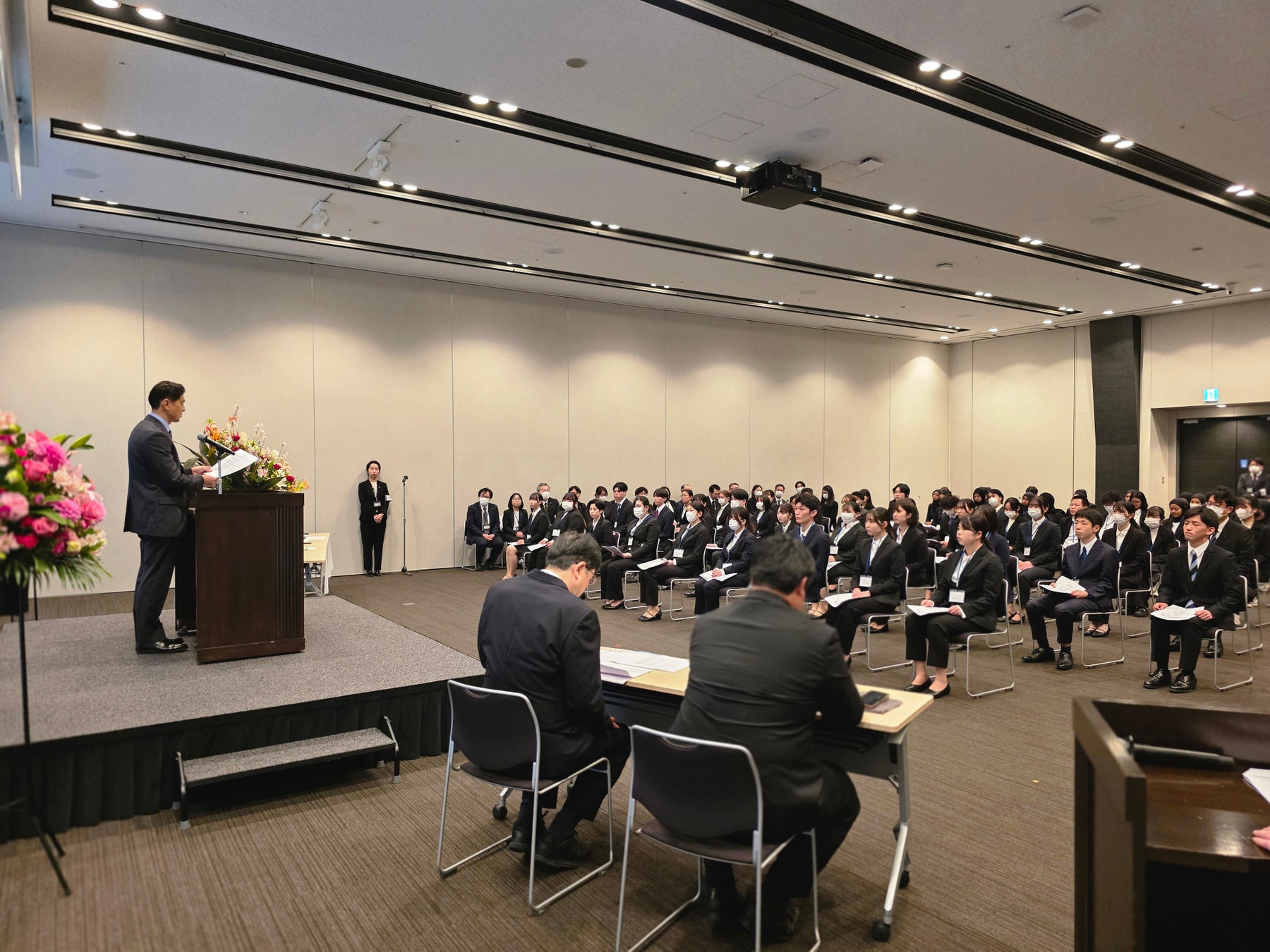 式典では、理事長挨拶、来賓祝辞、常務理事挨拶に加え、辞令交付や新入職員による誓いの言葉が行われました。