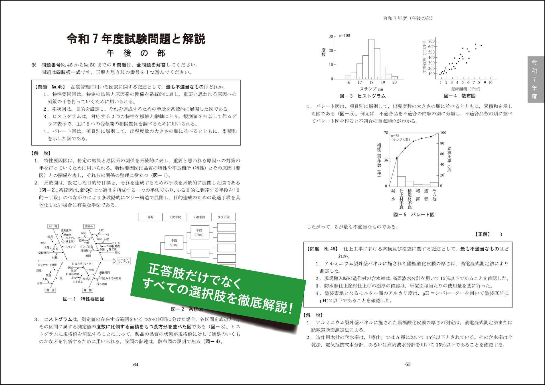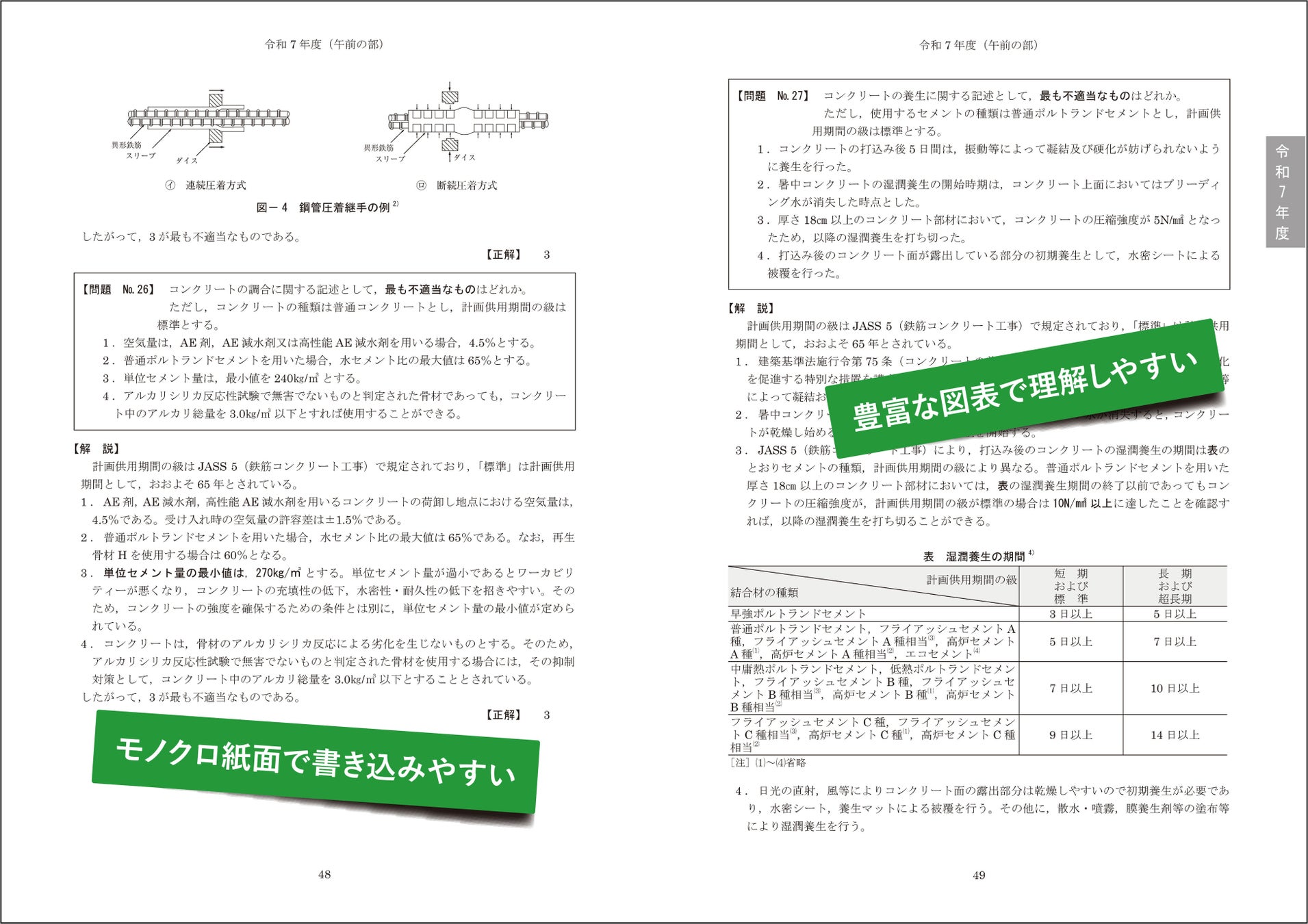 令和7年度から平成30年度までの過去8年分の試験問題と解説を集録した大ボリュームの過去問題集。新傾向問題にも対応した令和8年度施工管理技士試験対策の決定版です。