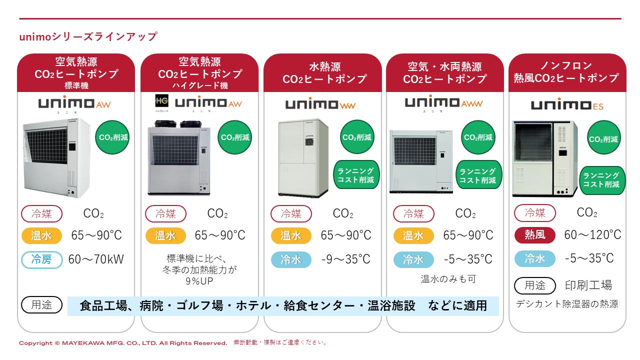 unimo AW:空気熱を利用し、ボイラーからの置き換えで大幅なCO₂排出量削減を実現。