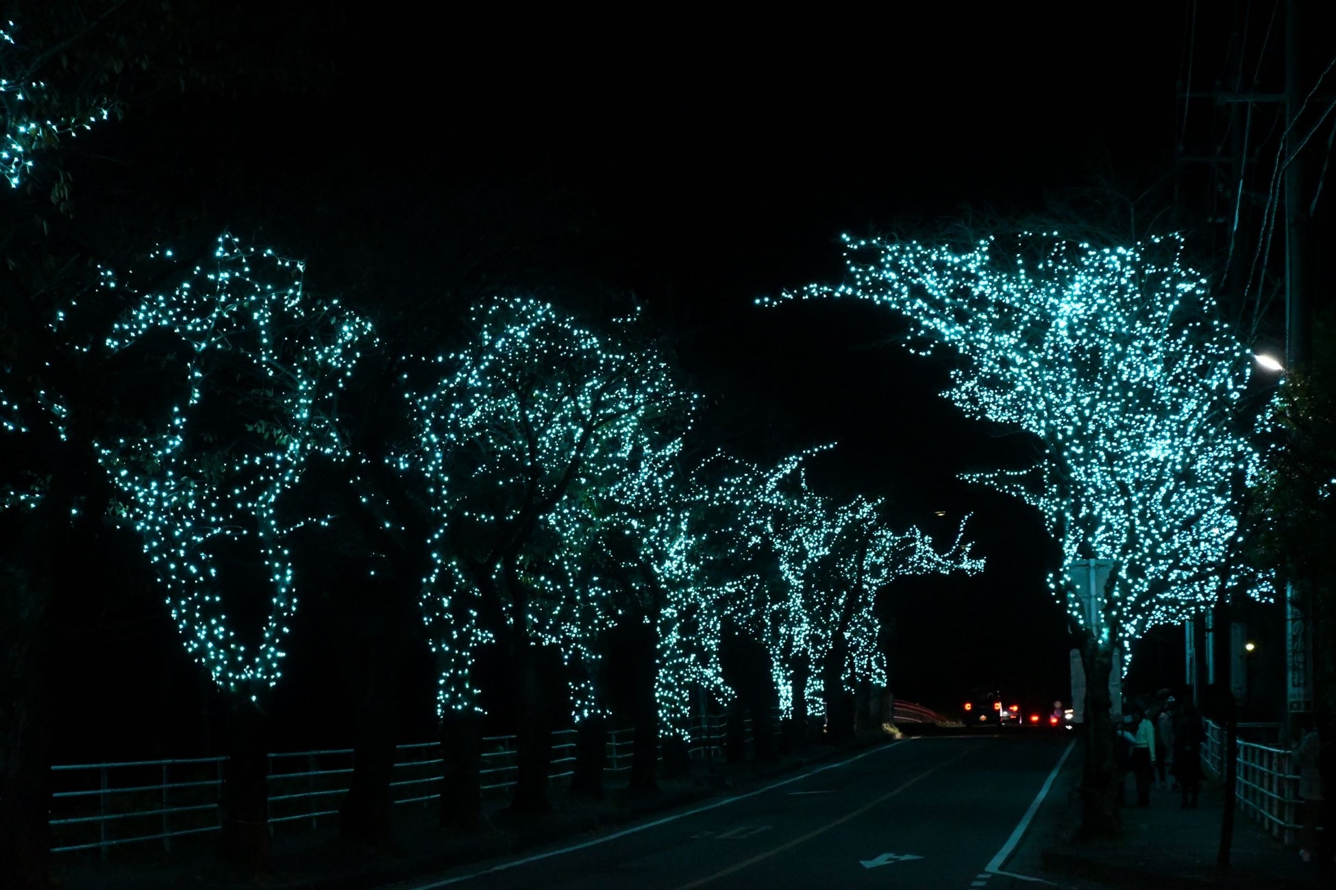 会場となった国道306号線沿いの街路樹は、幻想的なブルーの光に包まれ、冬の始まりを告げる美しい夜景が広がりました。