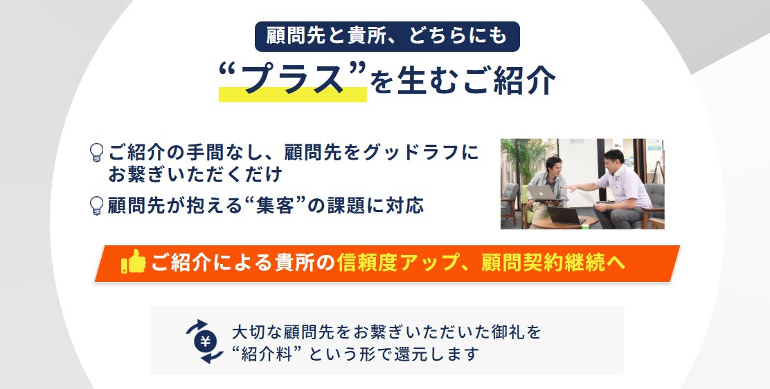 Webマーケティング支援を手掛ける株式会社グッドラフ(本社:兵庫県神戸市、代表取締役:小巻 正継)は、士業事務所様を対象とした「Web集客代行パートナー制度」において、提携後の具体的な業務フローとサポート体制の詳細を公開いたしました。