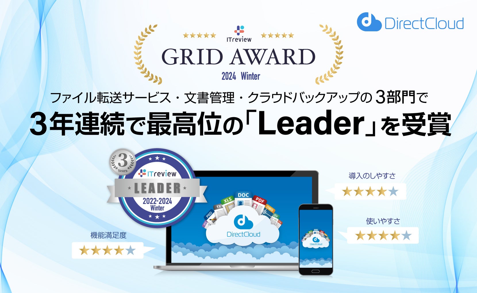 DirectCloudが「ITreview Grid Award 2024 Winter」の3部門で3年連続最高位「Leader」を受賞