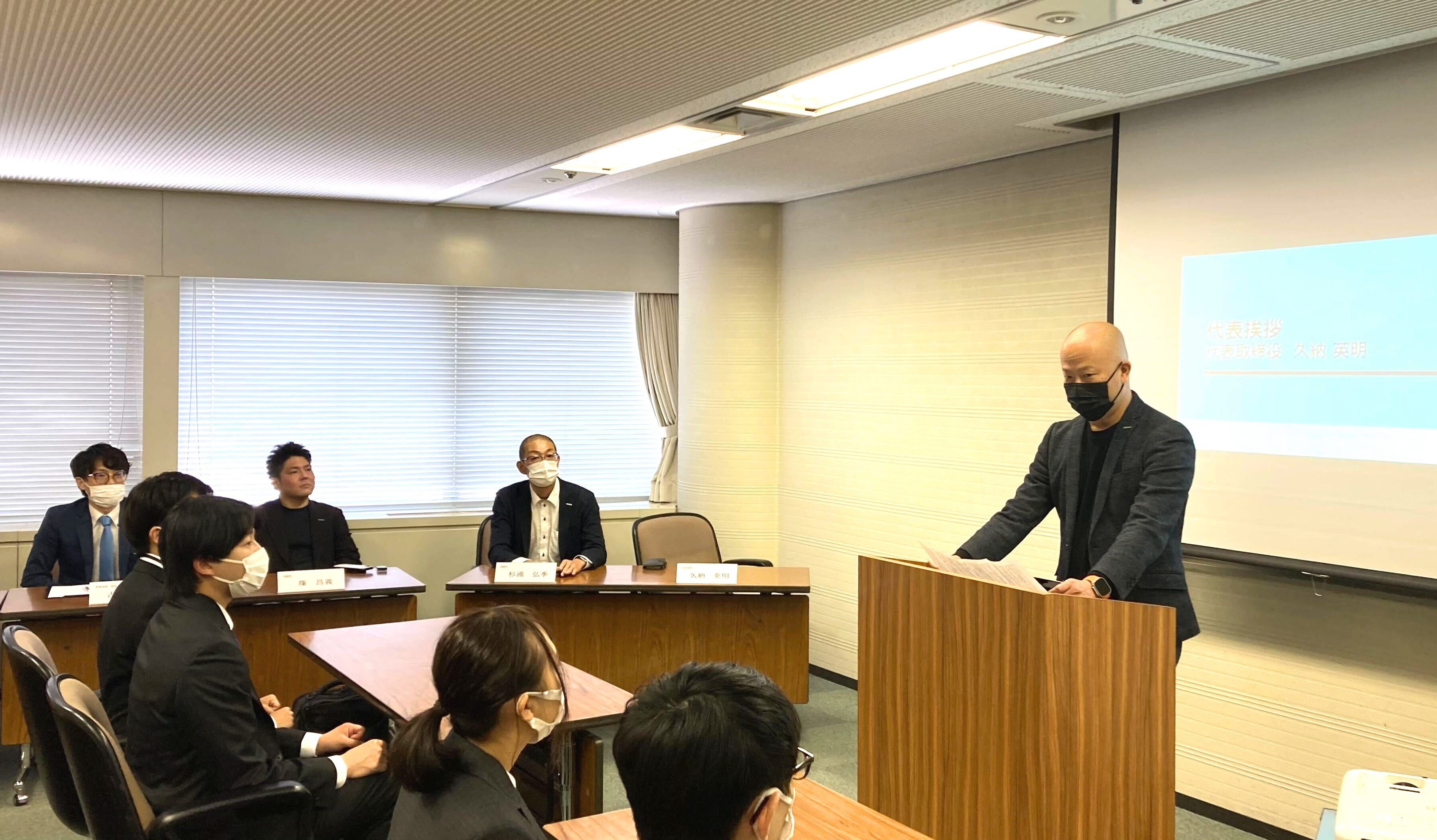 新入社員代表の希望に満ちた決意表明、代表取締役の久納英明からは、新入社員へ向けたメッセージが贈られました。