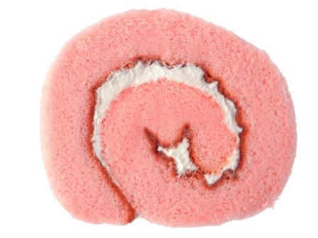 いちごソースを練りこんだ生地で練乳入りクレームを巻きました。