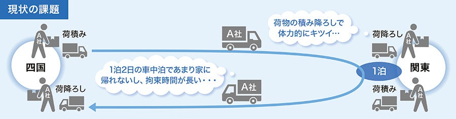 近年トラック輸送におけるドライバー不足が深刻化しており、輸送の効率化および労働負荷軽減が大きな社会課題となっています。特に、長距離ドライバーは、運転以外にも荷物の積み降ろしなどの荷役時間や、荷待ち時間により拘束時間が長く、ドライバーによる荷役作業は体力的な負担も大きいため、決して労働環境が良いとは言えない状況です。さらに2024年から働き方改革関連法により、「自動車運転業務における時間外労働時間の上限規制」が適用されることで、運送・物流業界の労働環境の整備が必要です。また運送・物流業界ではトラックによるCO₂排出量が多く、カーボンニュートラルの実現に向けてトラック輸送の効率化が求められています。