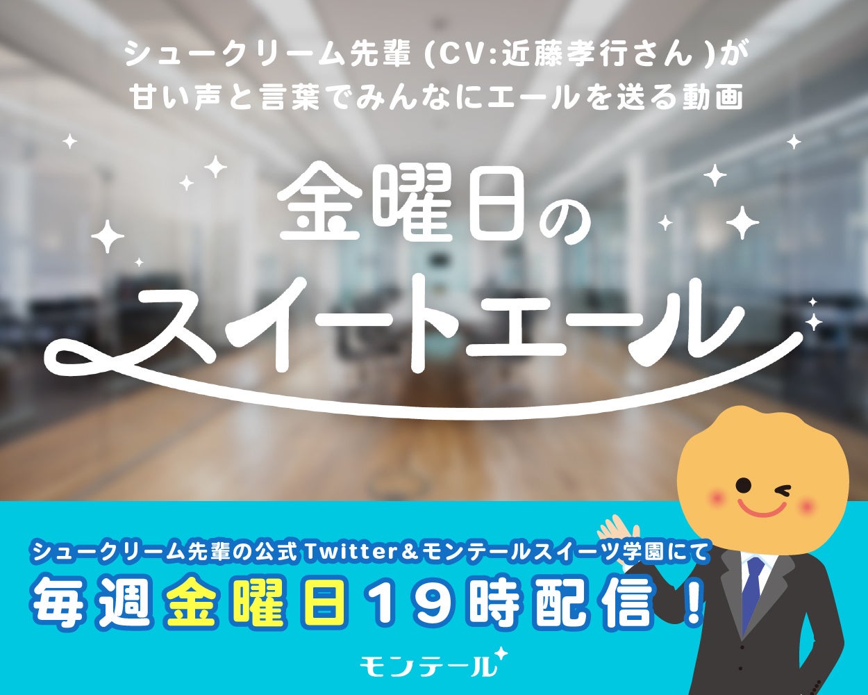 洋生菓子を製造・販売する株式会社モンテール(本社:埼玉県八潮市、以下モンテール)は、モンテールの甘すぎる公式キャラクター・シュークリーム先輩と声優・近藤孝行さんの企画「シュー先輩PROJECT ’22 甘い声で癒しをお届け!SWEET VOICES」を8月から展開し、そのプロジェクトの第2弾となる「シュークリーム先輩と行く!モンテール工場見学」動画をシュークリーム先輩の誕生日である10月19日(水)に合わせてモンテール公式Youtubeで公開します。