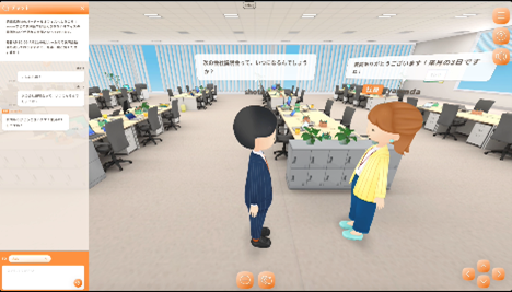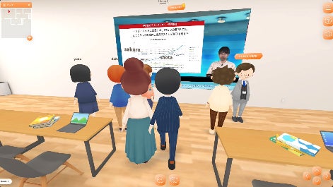 オフィス内には、NPC(=ノンプレイヤーキャラクター)のアバターやオブジェクト(オフィス内に置かれたパソコンや本棚など)も用意。 任意の画像をアップロードしてユーザーへの情報提供が可能です。