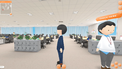 男女様々な姿の“アバター”から好みのアバターを選んで、バーチャルオフィス内での自分の分身として自由に操作し企業研究のための情報を集めたり社員と就活生が相互に交流することができます。