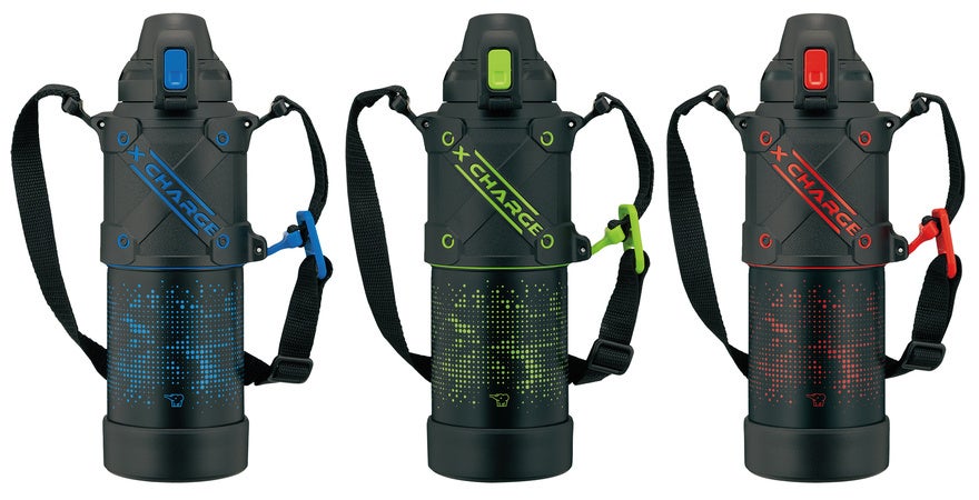 衝撃や擦れから本体をガードする「樹脂製プロテクトアーマー」を搭載した、ポーチレスのステンレス クールボトル。ボトルの上部と下部が樹脂製のプロテクトアーマーで覆われており、うっかり落としてしまった時などの衝撃から本体をしっかりガード。アクティブな少年少女に向けた工夫が詰まった、今までにないタフなデザインです。