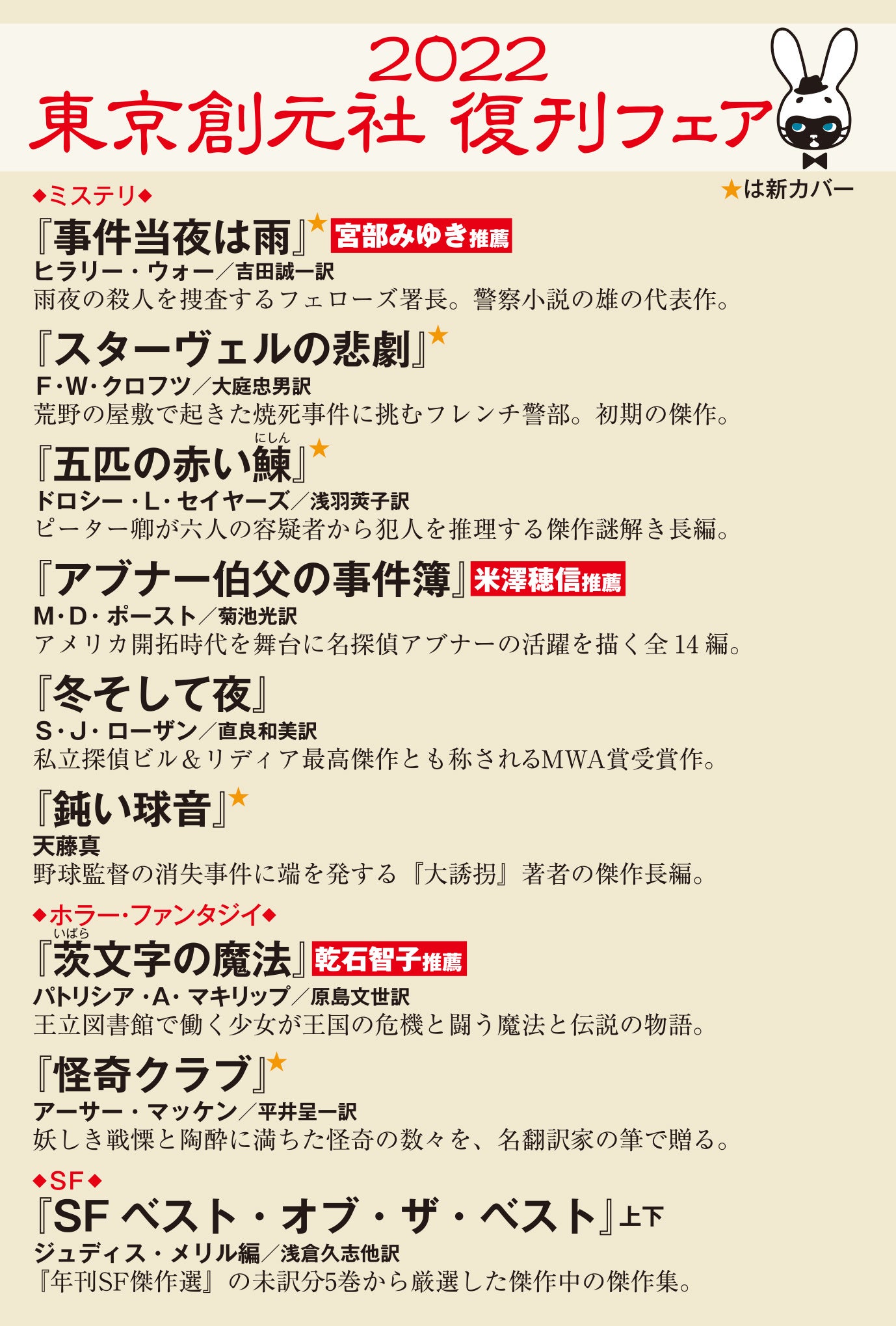 ファン待望の恒例企画!東京創元社の「復刊フェア 2022」が開催中!