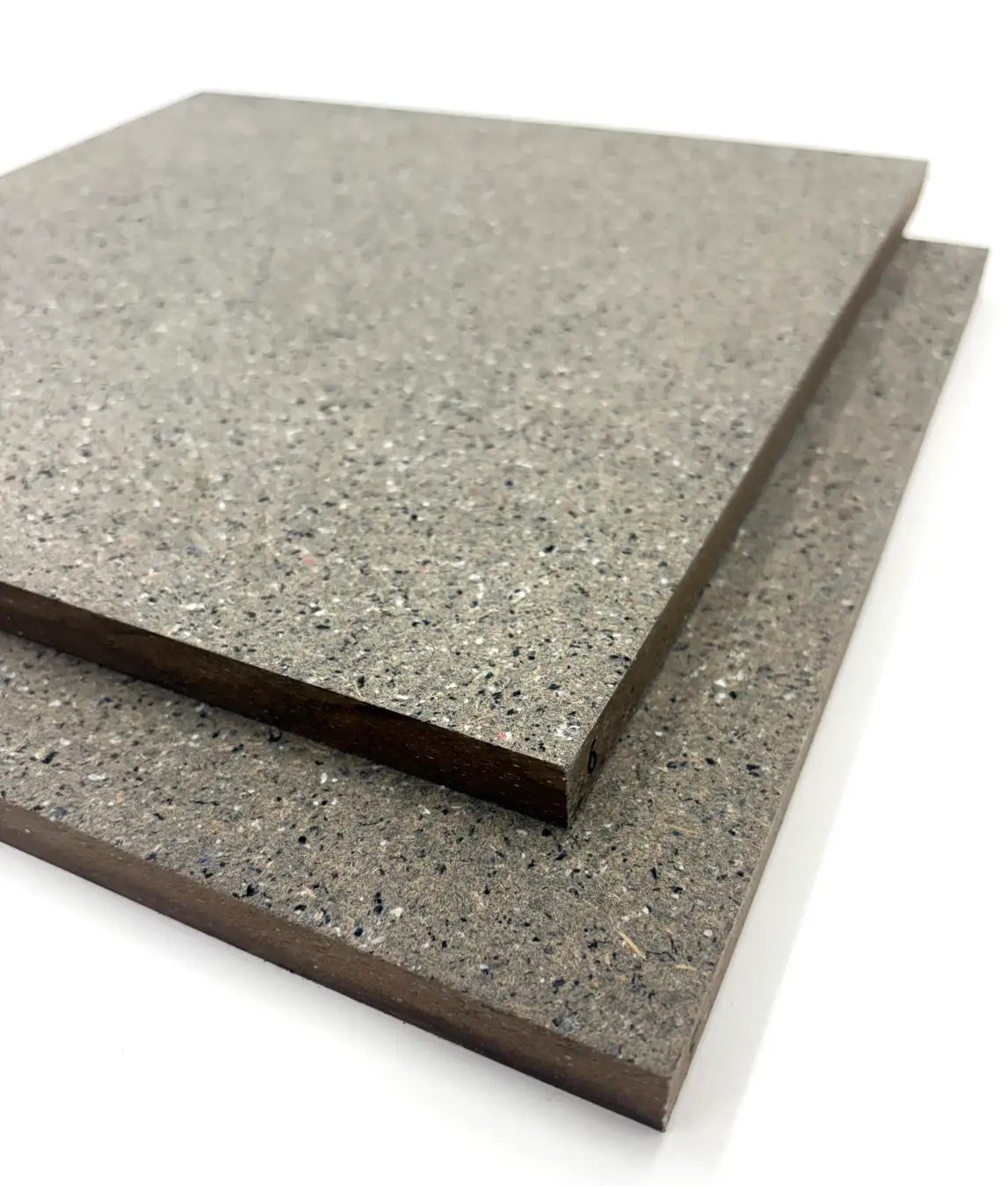 「PANECO® board M」 は、建材の量産製造設備を活用し、廃棄衣類などの繊維廃棄物を主原料として開発された、環境に配慮した社会実装型のリサイクル建材です。