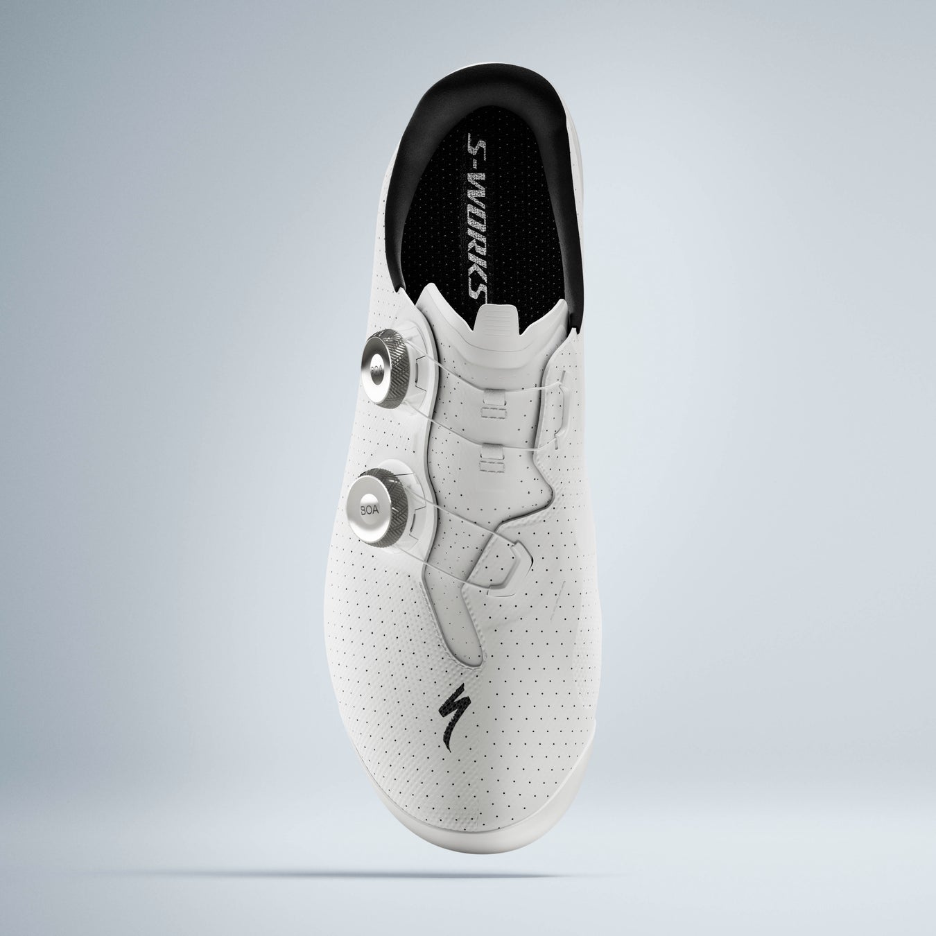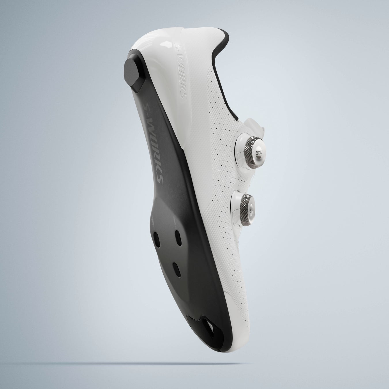 Retülテクノロジーで10万回以上スキャンして集めたデータから、さまざまなライダーの足の形状に対応するには、2種類のアウトソールを用意するのが最適であることが判明。そこで、新たに開発したカーボン製アウトソールはS-Works 7に比べ幅を4mmおよび 7mm広げたものの2種類を用意しました。