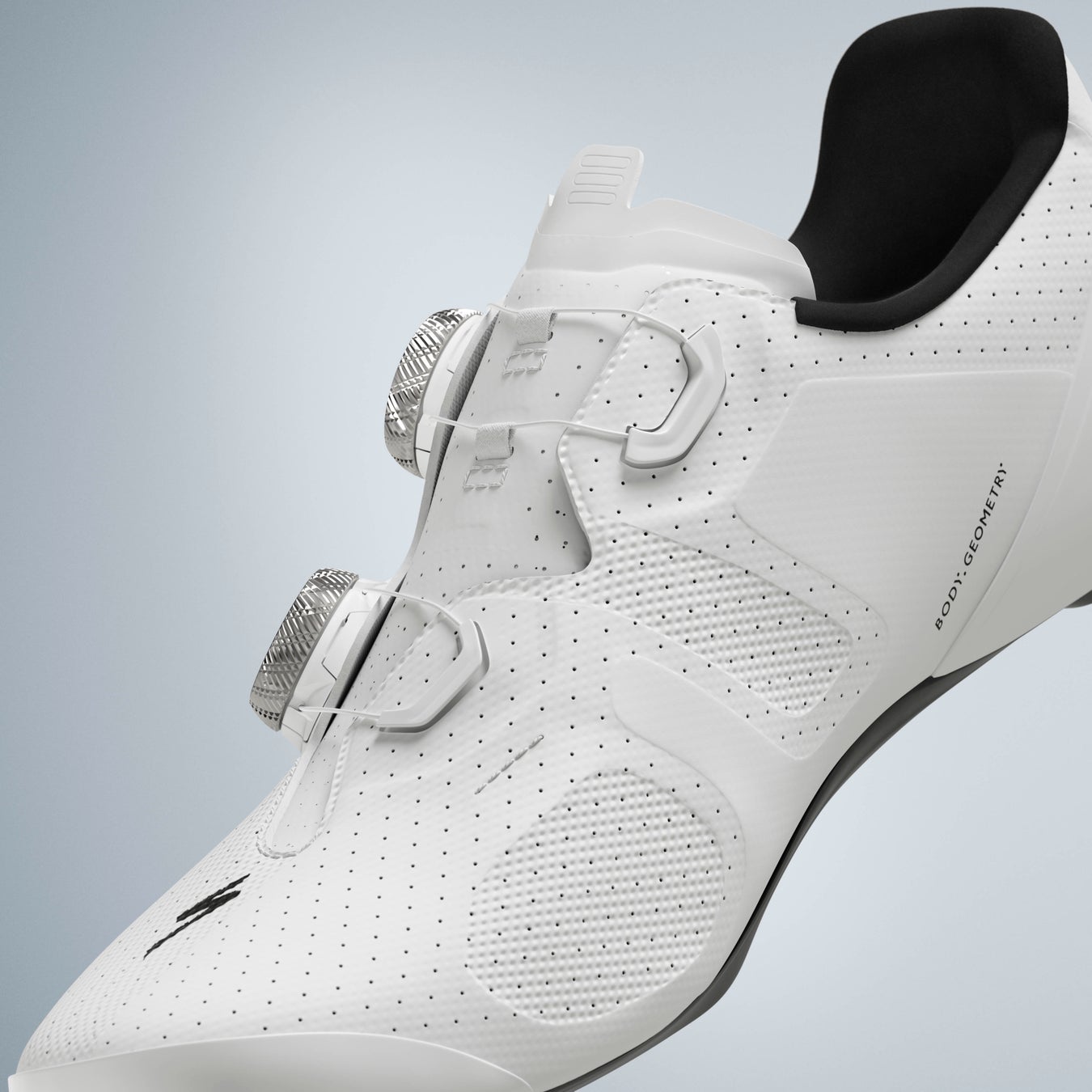 「問題を特定し、デザインによって解決し、科学的に検証する」。それがBody Geometryです。1997年、科学的に検証された史上初のBody Geometryサドルを開発したことから始まり、スペシャライズドは20年以上にわたり、ライダーの身体とバイクとのタッチポイントがパフォーマンスを向上させ、痛みを生まないようにこだわってきました。シューズに関しては、以下の3つのテクノロジーで特許を取得し、さらなるパワーと効率性を簡単に引き出せるようにしています。