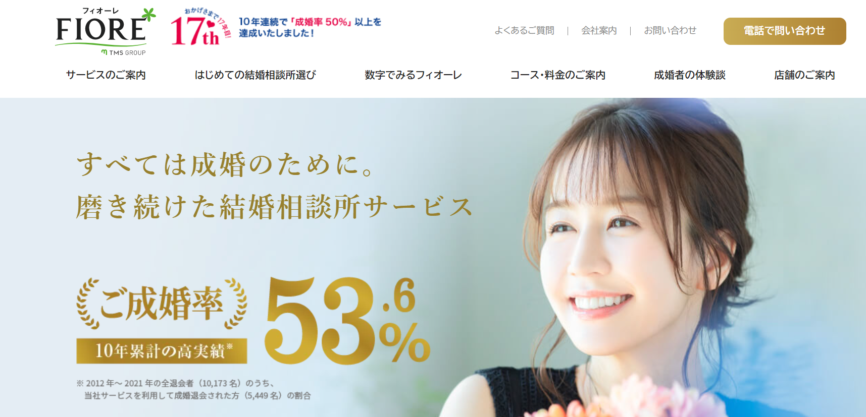 - ・結婚相談所フィオーレは10年累計の高実績「ご成婚率50%以上」のサービスです