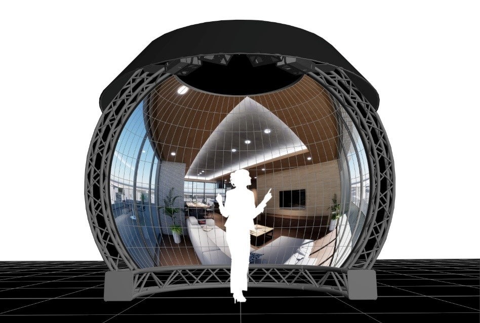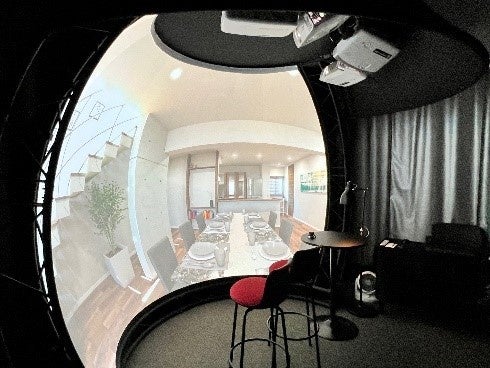 建築の提案には基本的に設計図やイメージパース等が主に用いられますが、平面的な情報だけだとイメージしづらく、完成してから理想と違った等の差異が発生してしまう可能性があります。VRを活用することによって原寸大で投影できることから、お客様との合意形成がスムーズとなり、より具体的な提案が可能となります。VRを活用した建築提案は既に建設業界でも広がってきておりますが、今回当社では先端技術を駆使した直径約3メートルのドーム型VRを社屋内に設置し、より臨場感や没入感を体験できる提案ツールとして導入しました。