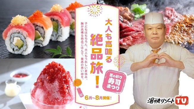 「日本の温泉を身近にする」を掲げ、温泉リゾート体験を提供する湯快リゾート株式会社(住所:京都府京都市 代表取締役社長:西谷浩司 以下、湯快リゾート)は、6月~8月限定「夏の彩り寿司まつり」を2022年6月1日(水)より開始いたします。