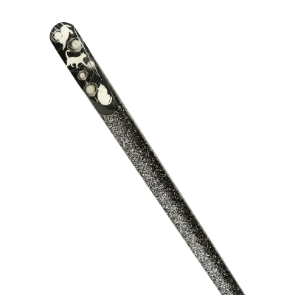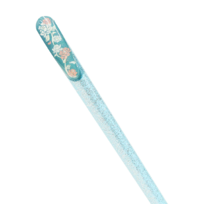 木軸全体にキラキラと輝く塗りを施し、トップの斜め切り部分には、女性の美しさを表す花らしく凛と咲く、大小の牡丹をあしらいました。全体的に華やかで涼しげな仕上がりとなっています。コーディネートに合わせたり、重ね付けでも楽しめるよう白と橙の2色に加え、新色の黒と空の全4カラー展開です。