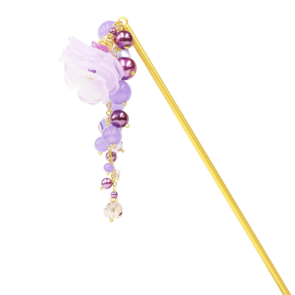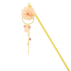 透け感のあるお花と大きめのビーズを組み合わせた、存在感のある一本簪です。