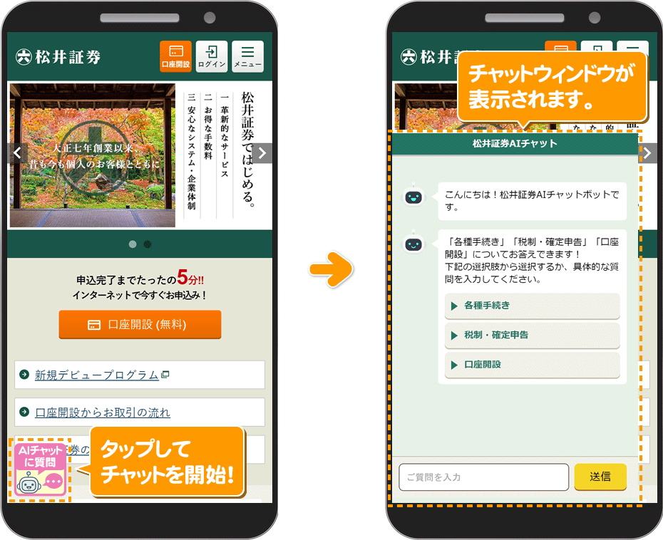 ・対象業務:ユーザーお問合せ回答業務(「各種手続き」、「税制・確定申告」、「口座開設」/松井証券HP上)