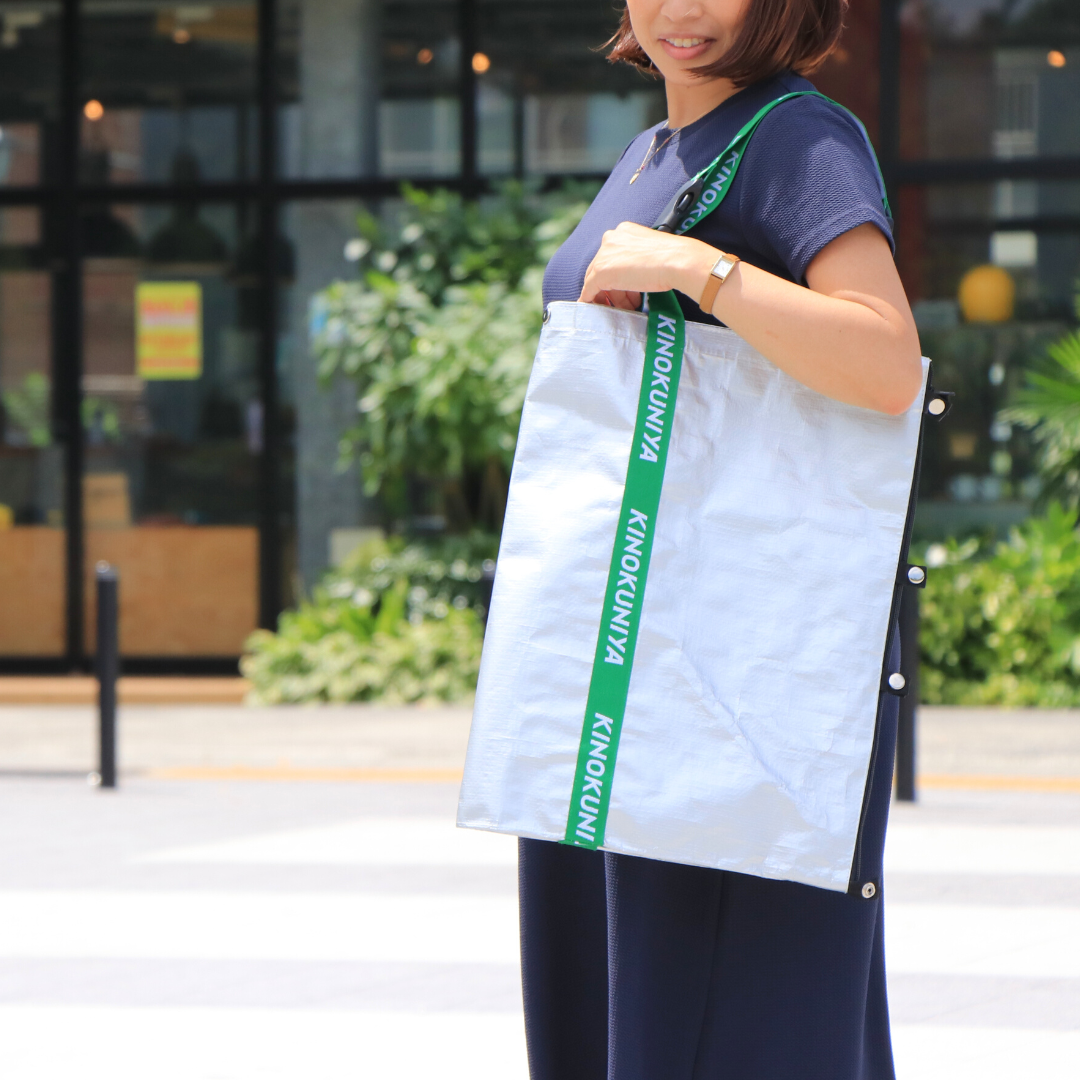 ベージュとシルバーの2色。持ち手部分に「KINOKUNIYA」のロゴをあしらいました。