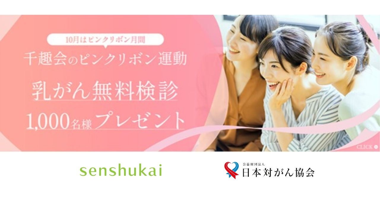 千趣会は、CSR活動の一環として、2007年より乳がんの早期発見、早期診断、適切な治療の大切さを啓発するピンクリボン運動の趣旨に賛同し支援を続けています。ここ数年はコロナ禍におけるピンクリボン活動の新しいあり方を模索し、今年3月、日本対がん協会と共に「がん検診クーポン」(日本対がん協会発行)のデジタル化を実現しました。紙のクーポンからデジタルクーポンへの進化で、より多くの方に手軽にがん検診を受けていただけるようになりました。今回はデジタルクーポン化が実現して以降、二回目のキャンペーン実施となります。