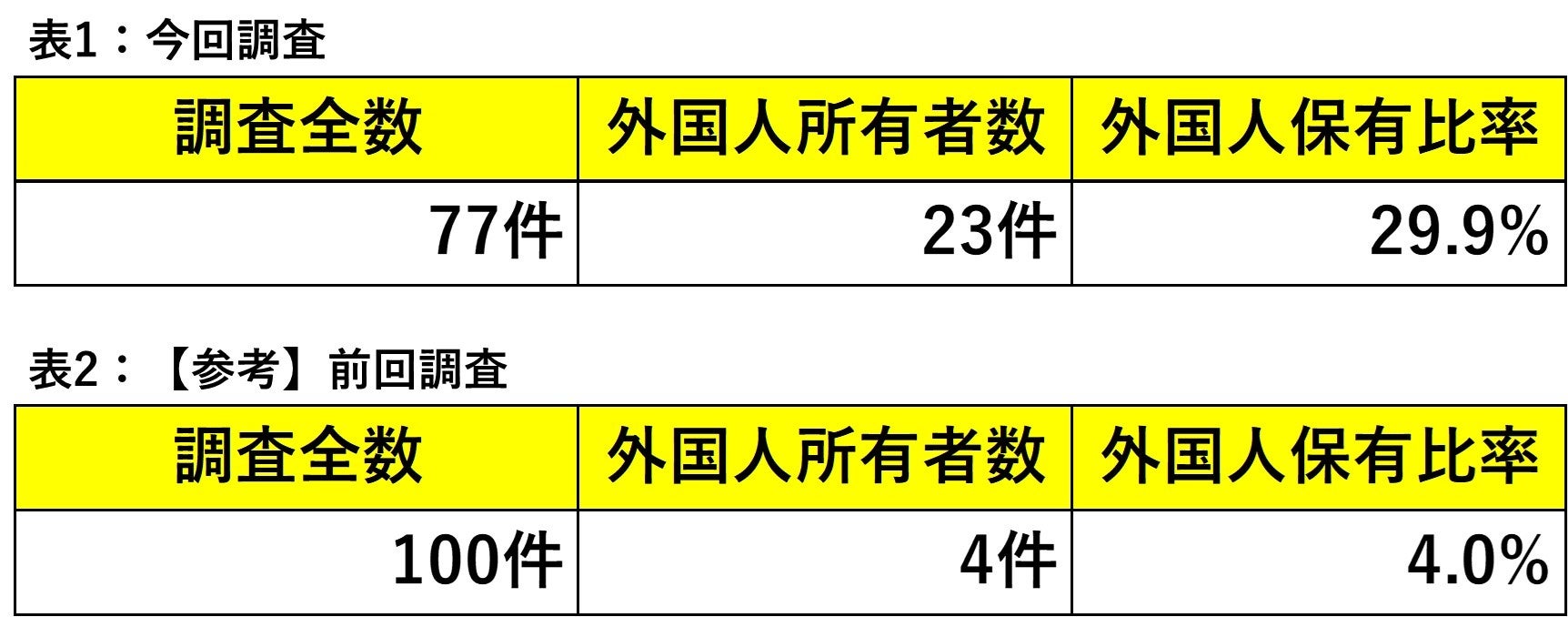 また、当該エリアにおいては調査対象マンション毎に、おおむね1割~3割が直近1年で外国人への所有権移転が見られましたが、特定のマンションにおいては約5割の外国人への所有権移転が見られました。