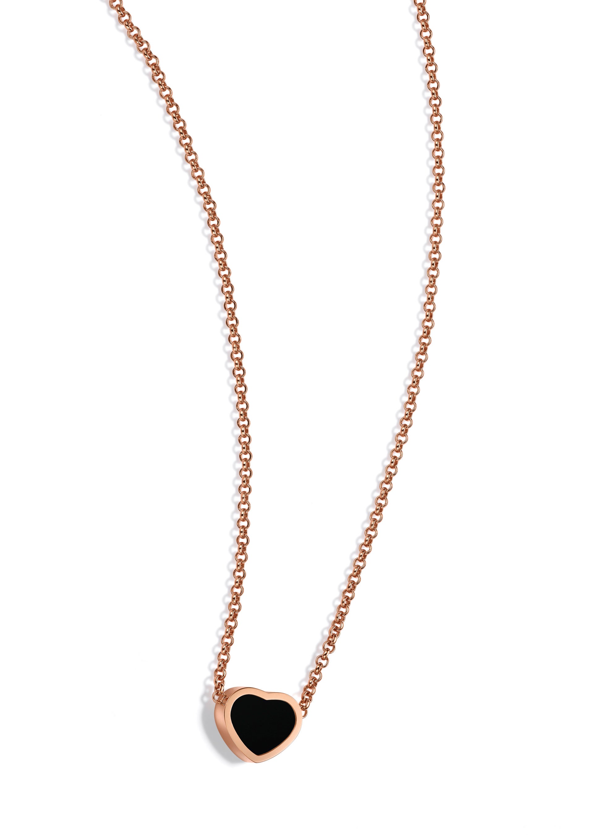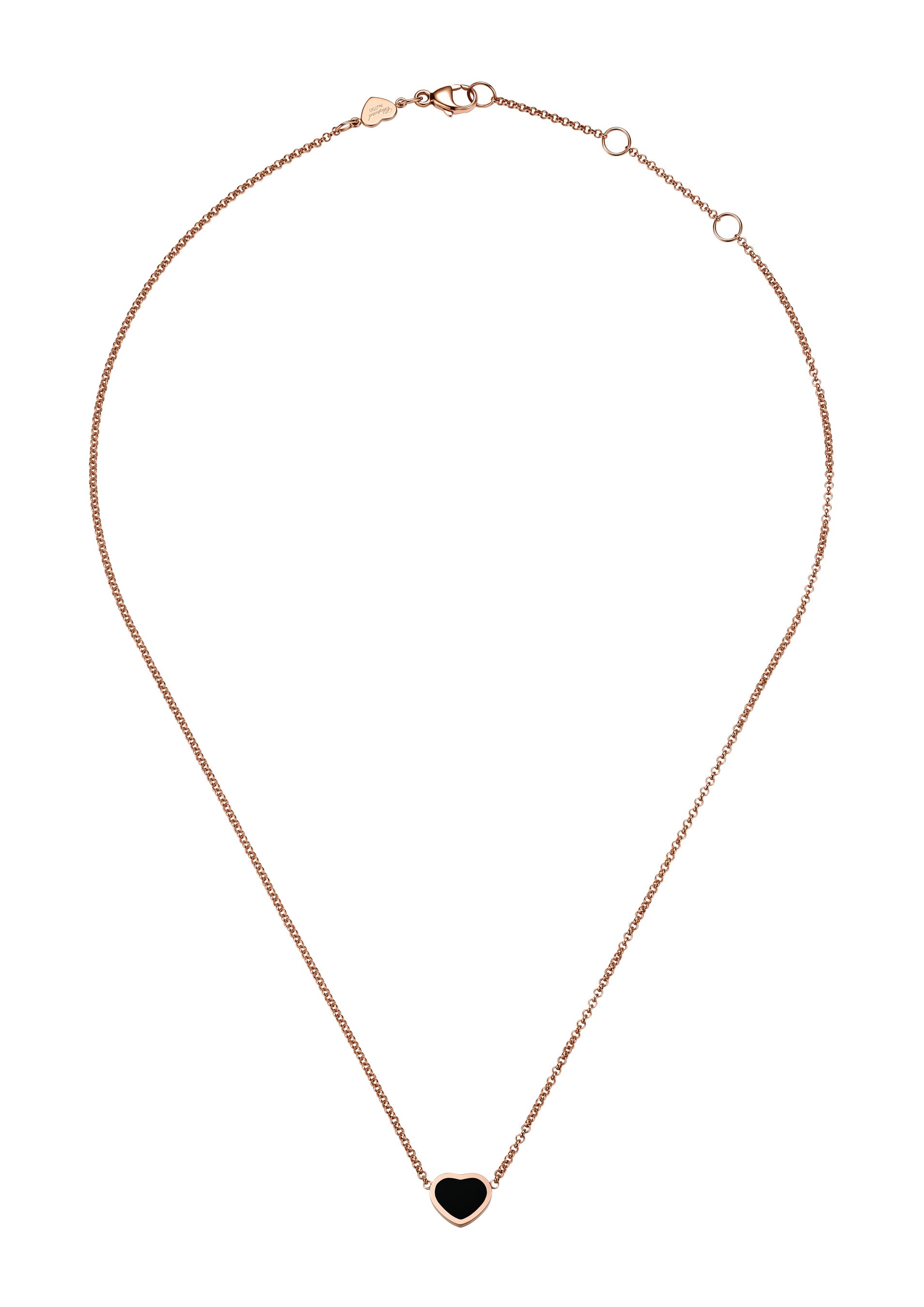 2022年にメゾン ショパールの新たなラインとしてコレクションに加わった、シングルハートがモチーフの「マイ ハッピーハート」から、シックなオニキスをあしらったネックレスが世界に先駆け、50本限定で発売されます。