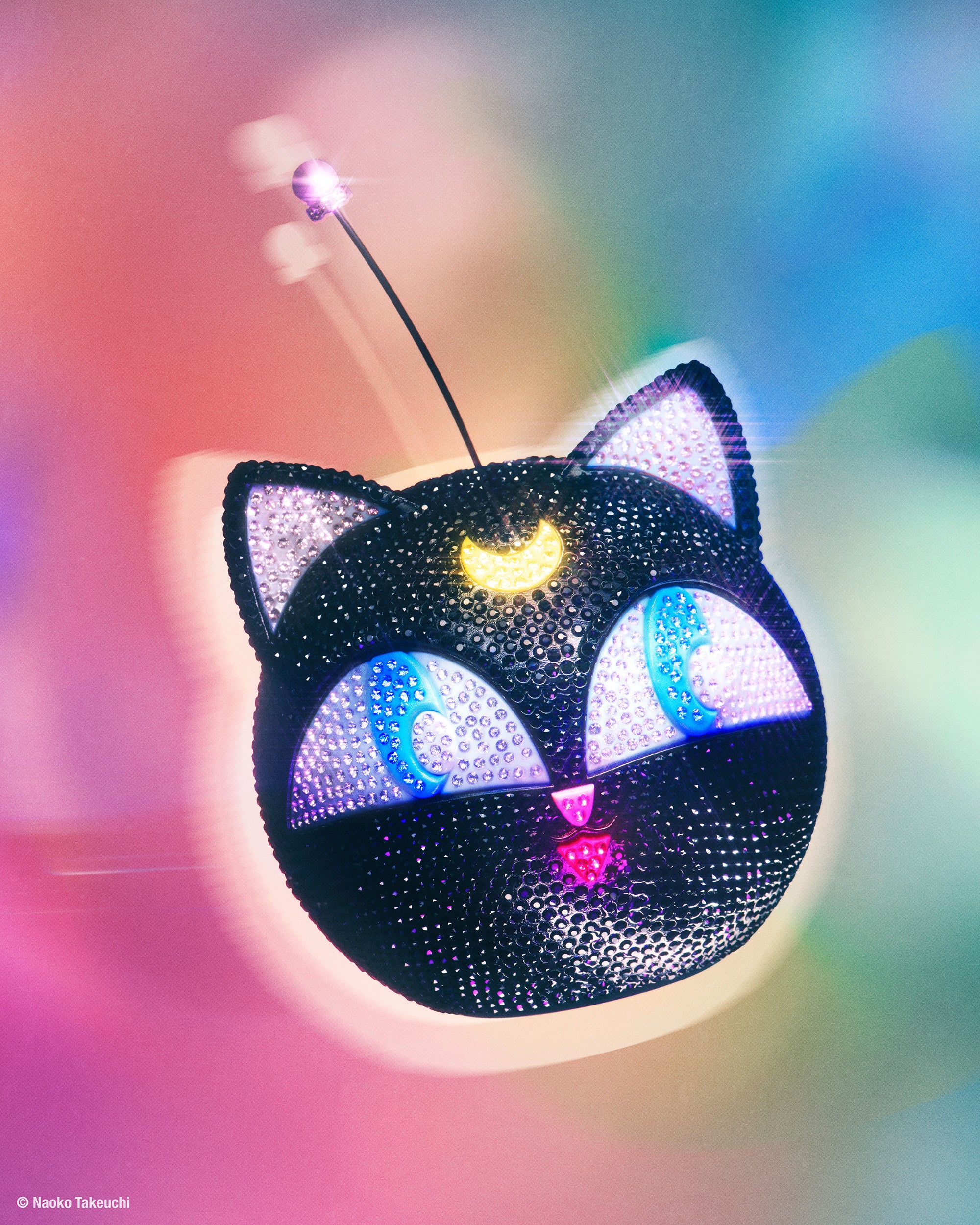武内直子氏によるオリジナルのマンガシリーズのアートワークは、DIAMOND TOTE、スマートフォンケース、カードホルダー、JIMMY CHOOの新商品であるAir Podsケースなど展開されています。各セーラー戦士のイラストが描かれ、それぞれのセーラー戦士のイメージカラーに合わせたメタルパーツがあしらわれたAVENUE VANITY BAGは、このコラボレーションのキーアイテムです。一目でルナPボール(ちびうさのアイテム)だとわかる特徴的なフォルムのこのミニバッグは、なめらかなレジン素材とクリスタルをちりばめた2種類で登場。JIMMY CHOOのシグネチャーシューズMARLOW MOCCASINSはこのマンガの主人公であるスーパーセーラームーンをイメージしたカラーに染められ、ホログラム風に輝くクリスタルをあしらったスタイルと黒猫ルナをイメージしたブラックのグリッターで仕上げられたスタイルで登場。