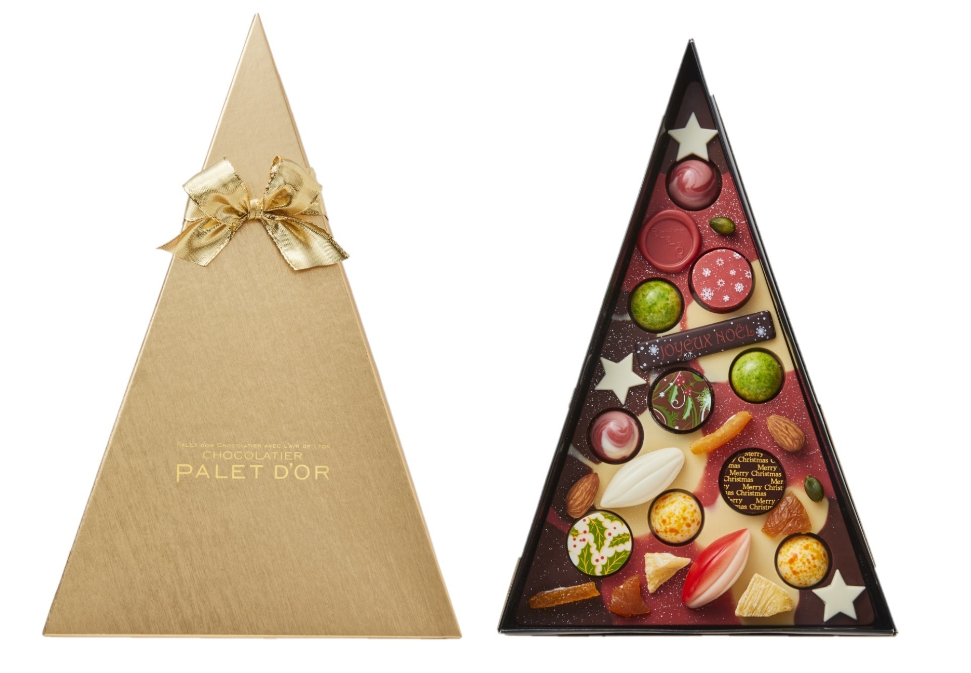 毎年ご好評をいただいている「Xmasツリーショコラ」。2023年バージョンは、「フルーツXmas」をテーマに、ベリー、シトラス、トロピコなどの新作ボンボンショコラをツリーのオーナメントに見立てて詰め合わせました。土台まで丸ごと食べられるツリーショコラは、カカオ豆の選別・焙煎から手掛ける自家製ビターミルクチョコレートをベースに、苺とパッションフルーツのチョコレートを組み合わせ、きらめくイルミネーションにほんのりと照らされるオーナメントをイメージした仕上がりに。ショコラティエがひとつひとつ丁寧にお作りしている為、ご用意できる数量に限りがございます。この早期予約を利用して確実に手に入れてはいかがでしょうか?