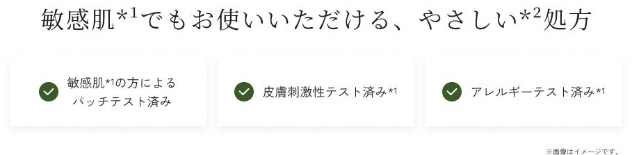 *1 敏感肌の方によるパッチテスト済み・皮膚刺激性テスト済み・アレルギーテスト済み(全ての方に皮膚刺激やアレルギーが発生しないということではありません。) *2 使い心地のこと
