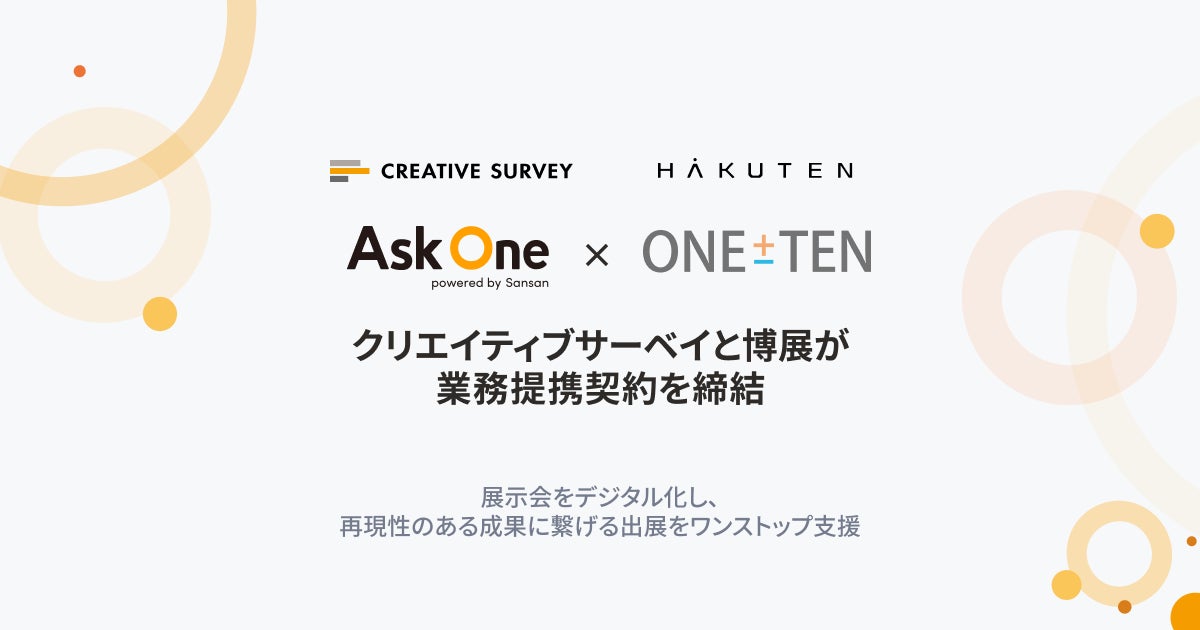 「Ask One」を提供するクリエイティブサーベイと「ONE±TEN」を提供する博展が業務提携契約を締結
