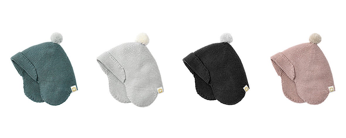 ベビーの動きに合わせて弾むぽんぽんで、愛らしいニット帽。