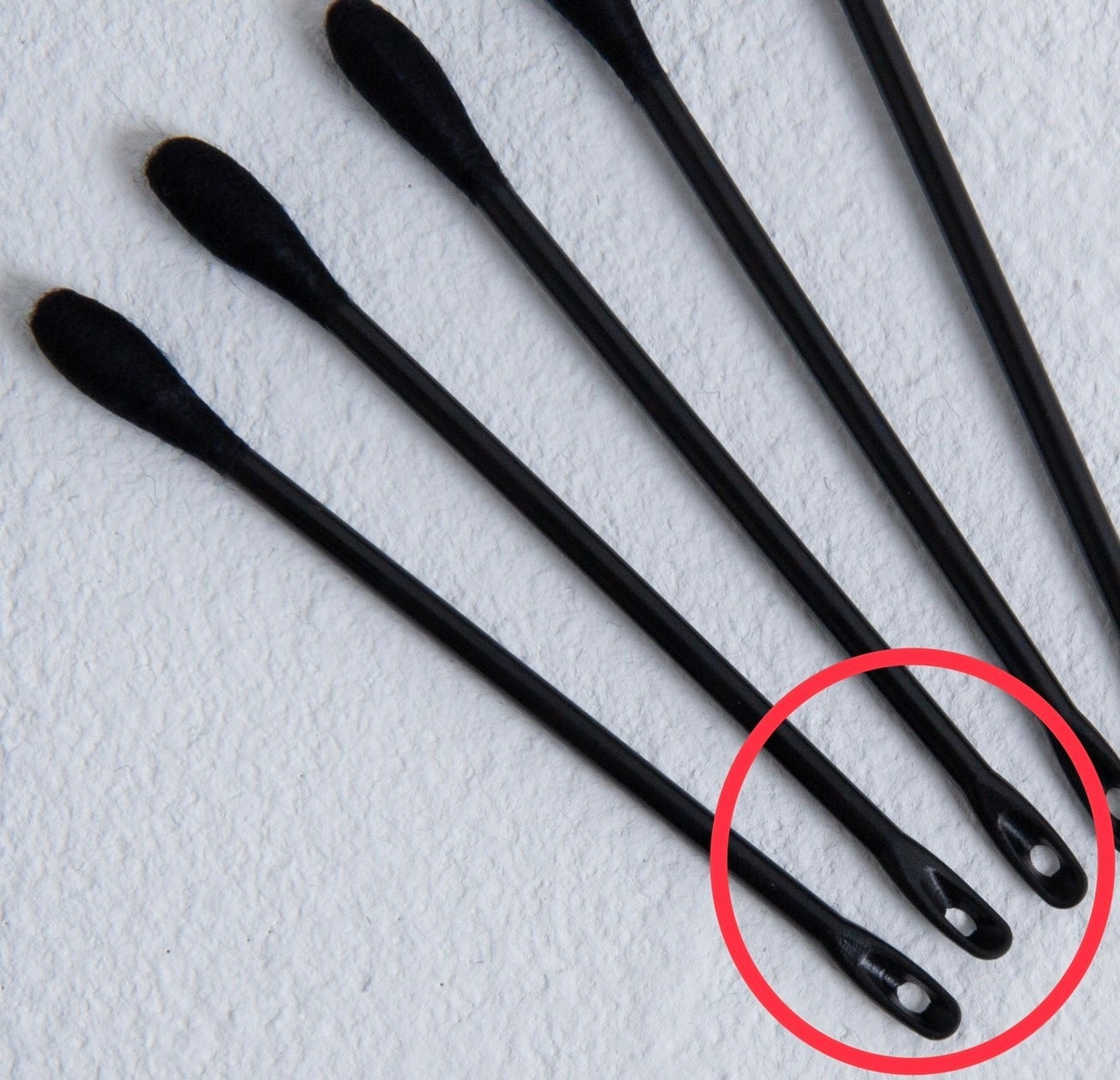 Point 2 穴開き綿棒で汚れをしっかりキャッチ。細かい汚れも逃さない。