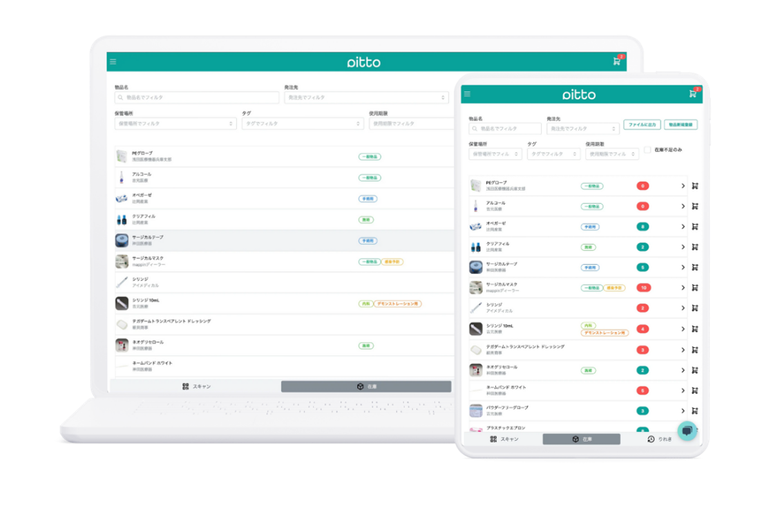 「pitto(ピット)」は、これらの問題を簡単に解決します。QRコードを使ったシンプルな操作で、誰でも正確に在庫を管理でき、必要な物品を自動で発注できます。これにより、在庫の過剰・不足や煩わしい発注作業が減少し、クリニックの運営がスムーズに。医療スタッフは診療に集中でき、コスト削減にもつながります。