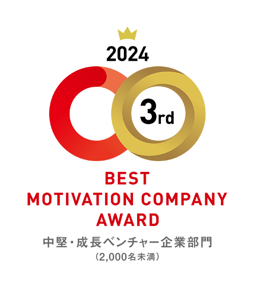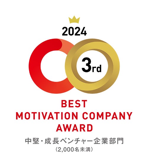「ベストモチベーションカンパニーアワード2024」とは、リンクアンドモチベーションが2023年に従業員エンゲージメント調査を実施した企業の中から、企業と従業員の相互理解・相思相愛度合いを偏差値化した「エンゲージメントスコア※」の高い10社が表彰される年に一度の式典です。この度、当社は中堅・成長ベンチャー企業部門(2,000名未満)において3位を受賞いたしました。