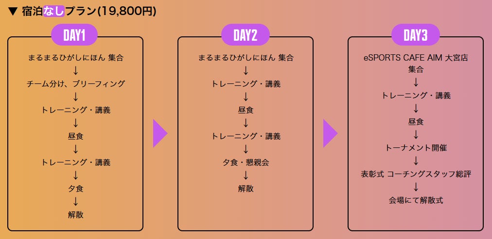 「埼玉eスポーツキャンプ2025」は、2024年3月に埼玉県が初開催しご好評いただいた「埼玉 eスポーツキャンプ」の第二弾となる2泊3日のトレーニングキャンプです。eスポーツにおける世界的リーディングカンパニーであるRiot Gamesが開発・運営するタクティカルシューター「VALORANT」を採用します。東京以北最大のターミナル駅である大宮駅周辺のeスポーツ施設に設置された、プロと同様のゲーミング環境で仲間との練習やチームトーナメントを行います。