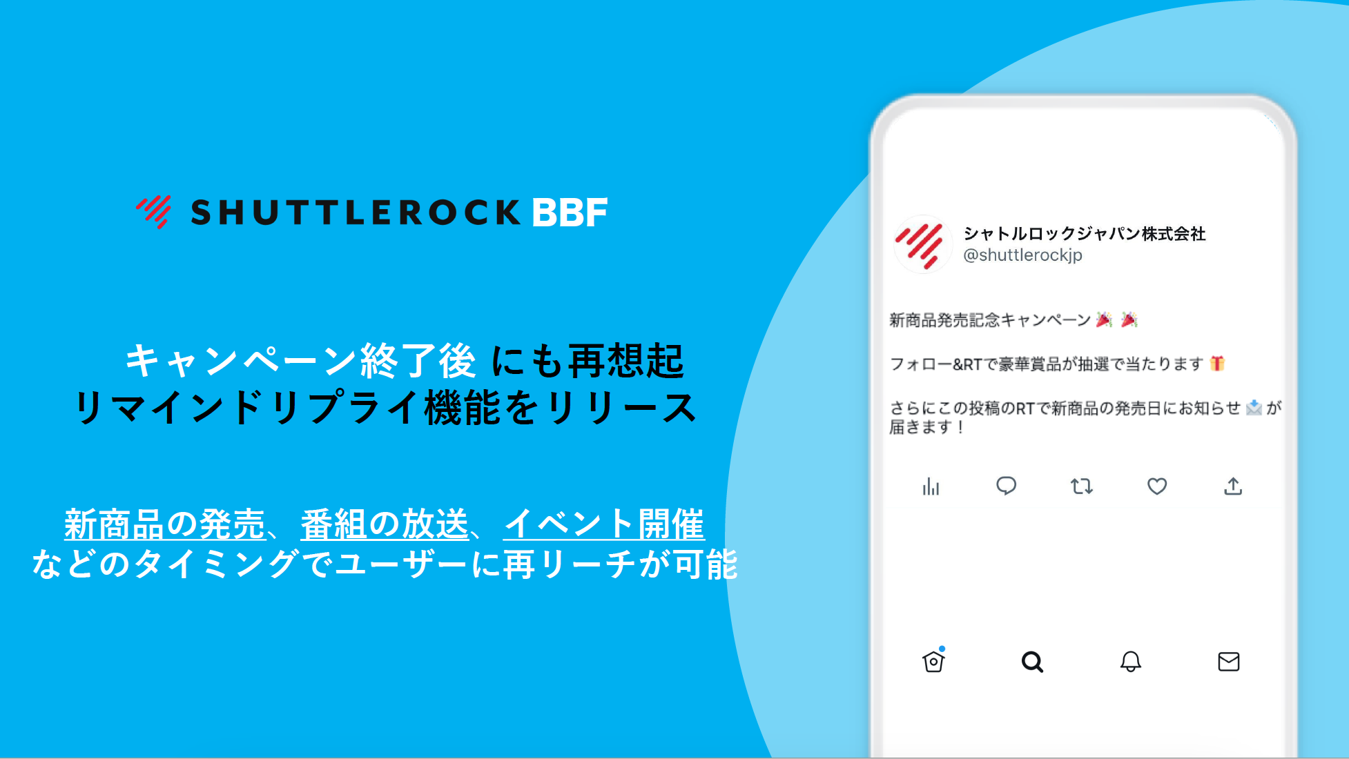 Twitterキャンペーンは、参加の手軽さと拡散力から、商品やブランド認知の効果が高いことで人気のSNSマーケティング施策です。今回、キャンペーン参加ユーザーへのキャンペーン終了後のアプローチを可能にする「リマインドリプライ機能」をリリースすることとなりました。