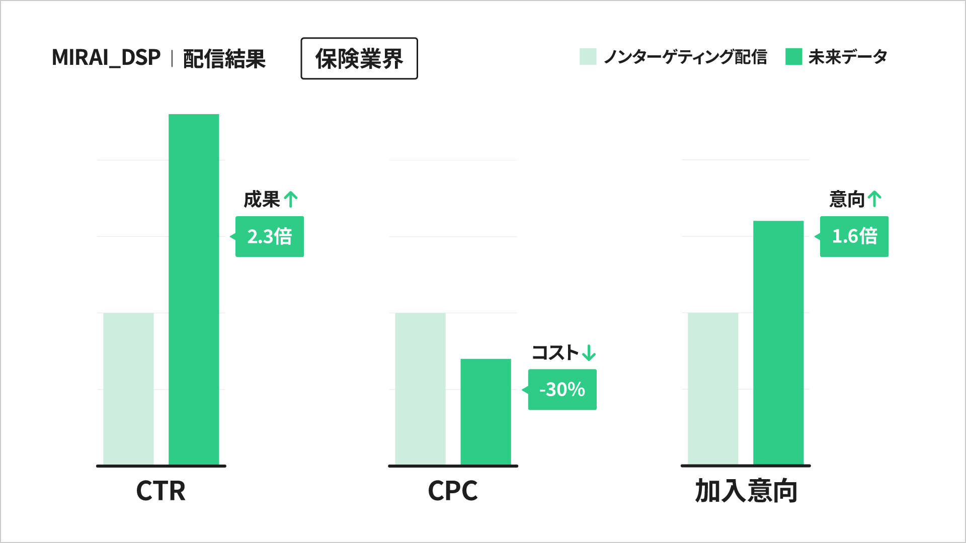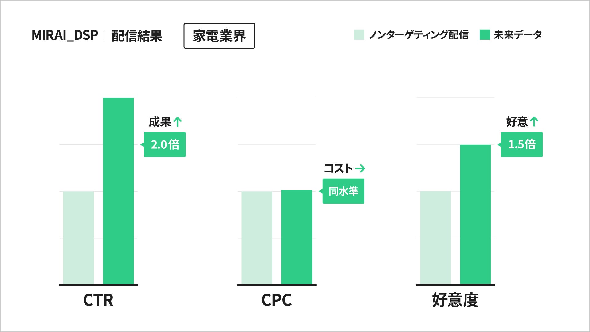 これにより、広告配信における未来データの有効性が確認され、MIRAI_DSPが、ユーザーのモーメントをとらえた広告配信を実現し、潜在的なターゲット層への効果的な訴求により、広告主のマーケティングに貢献できることが示されました。
