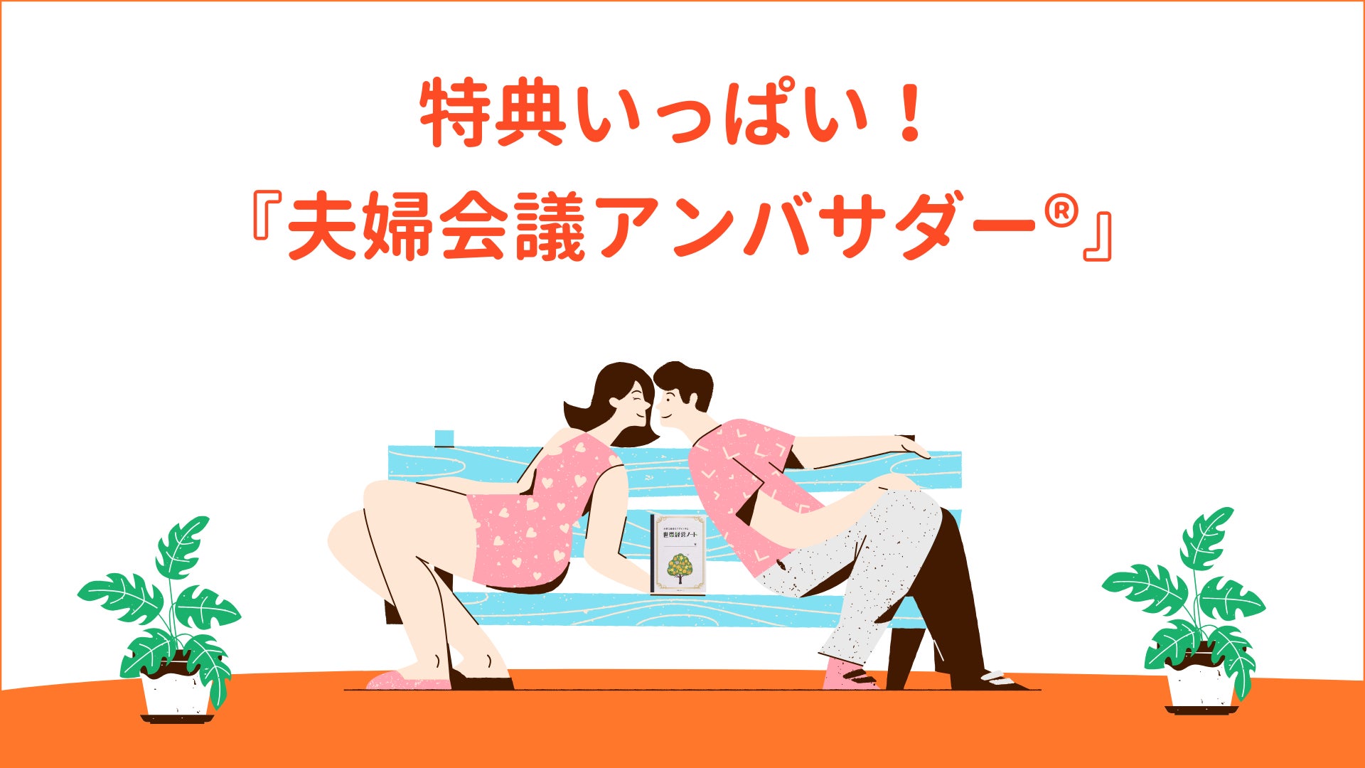 「夫婦会議アンバサダー」とは、世帯経営ノートや夫婦会議ノートなどの夫婦会議ツールを使って、実際に『夫婦会議』を行う中で感じた効果や魅力、楽しさを、ご自身の体験と共に積極的に発信いただく『夫婦会議』の公式活動です。