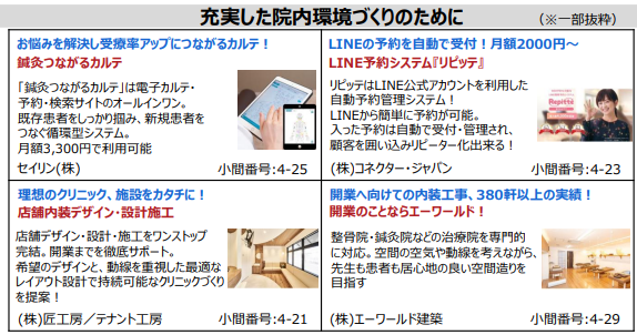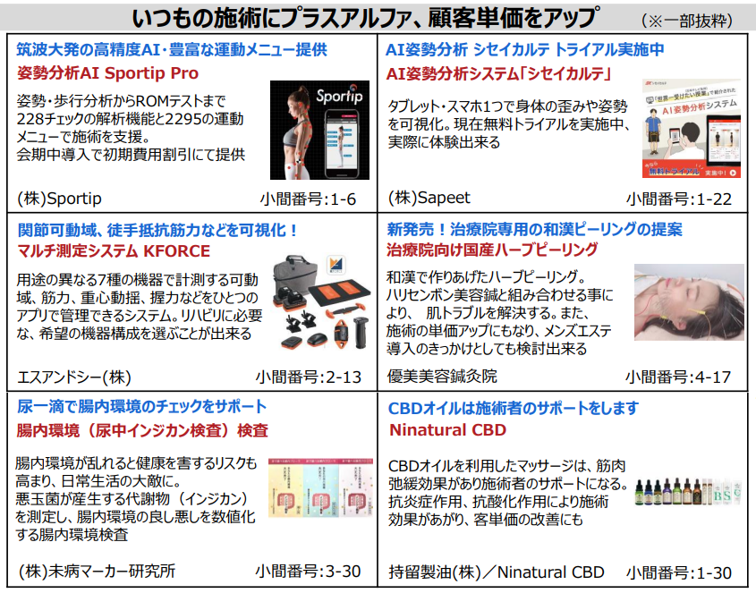 このほかにも、施術所の課題解決を支援する多数の企業・商品・サービスが出展!