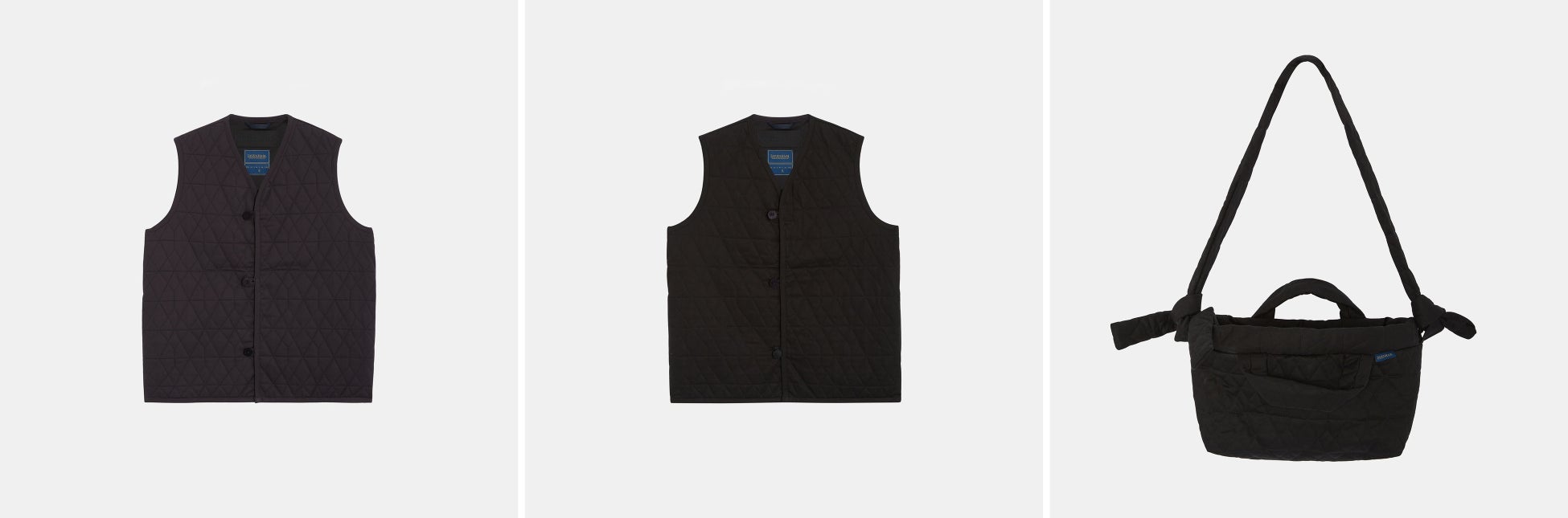 QUILTED GILET¥60,500(tax in)Dark Navy, Black BAG ¥49,500(tax in)
