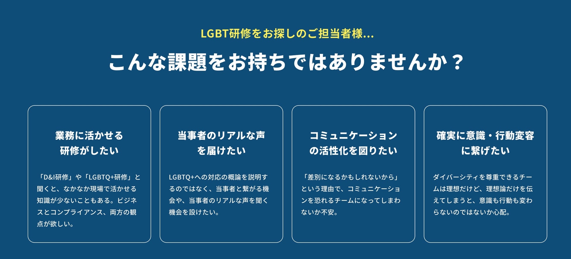 「どこに依頼すれば良いんだろう?」D&I推進担当者のお悩み、解消します。LGBTQ+研修での企業課題解決にお役立てください。