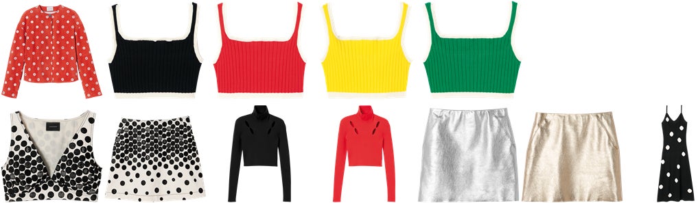 クロップトップス ¥53,900、ミニスカート ¥50,600