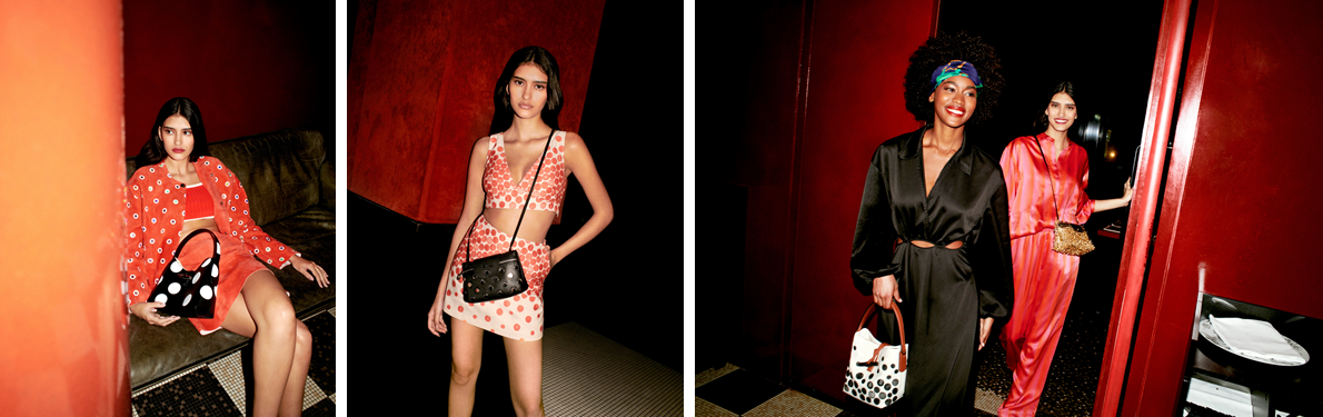 今年のホリデーシーズンと来たる年の幕開け、ポルカドットがコードのレザーバッグコレクション新作に、同じくポルカドットのプレタポルテを纏った現代のパリジェンヌがミラーボールのごとく輝きを放ちます。
