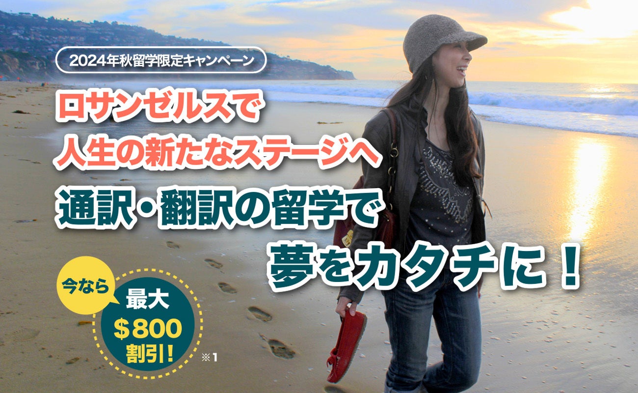 2008年に設立したJVTAロサンゼルスでは、米国当局より「職業訓練学生(M-1ビザ)」発給対象校の認可を受け留学生の受け入れを行っています。コースは字幕・吹き替えなどの映像翻訳のスキル習得を目標とする「映像翻訳専攻」、通訳・翻訳基礎力習得を目的とした「通訳・実務翻訳専攻」、そして本格的な翻訳・通訳のトレーニングを受ける際に必要となるスキルを養うための準備コースとなる「プレパラトリーコース」があります。プレパラトリーコースはコロナウイルスの流行により2020年以降休止となっていましたが、この度リニューアルして再度開講することを決定。再開を記念して、2024年10月からの留学生を対象に受講料から最大800ドルオフのキャンペーンを実施します。本キャンペーンはプレパラトリーコース希望者、映像翻訳専攻希望者、通訳・実務翻訳専攻希望者のいずれにも適用されます。