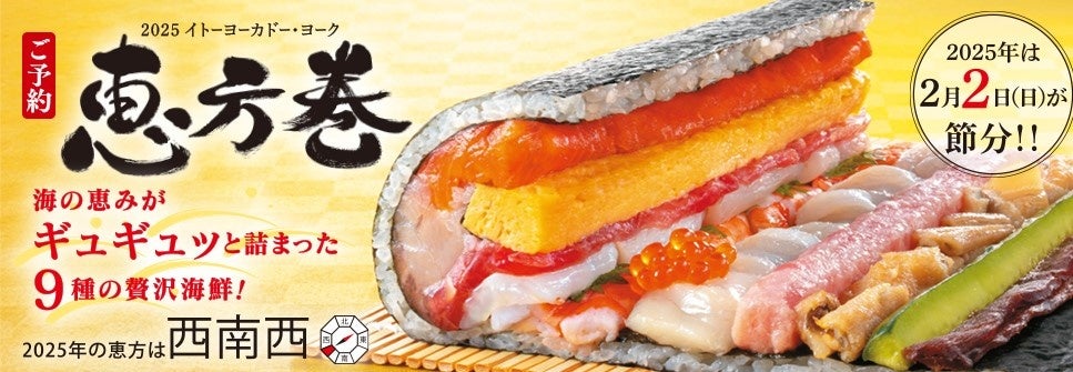株式会社イトーヨーカ堂(本社:東京都品川区、代表取締役社長:山本 哲也、以下「イトーヨーカドー」)は、2024年12月15日(日)より全国のイトーヨーカドー、ヨーク合計198店舗とご予約サイトにて、2025年の恵方巻の予約承りを開始いたします。